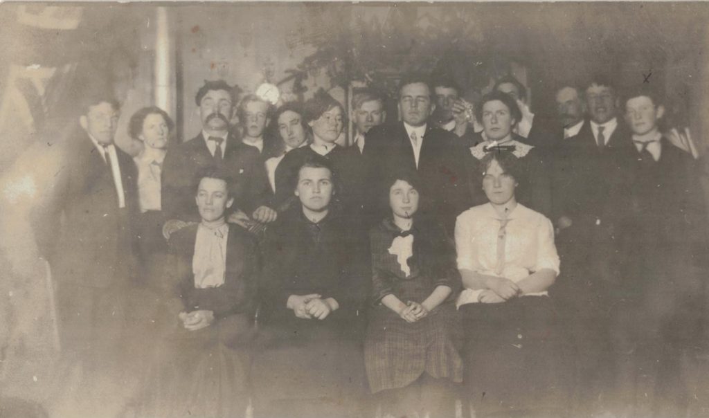 8137 – We have confirmation on most of the ladies: Gwen Lemoigne, Ollie Roper (mother of Betty), two as yet unidentified, then Leone Aker, Rose Salvador, and Vicky Wells. Probably an Easter Bonnet contest at the Presbyterian Church. We’re still working on ladies #3 and #4 from the left.