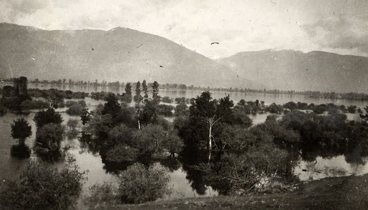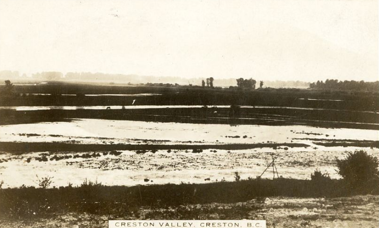 Mrs. Dow and her husband eventually built a fine home, considerably large rand more elegant than the original log cabin, on the bench lands overlooking the Creston flats (about where Crestglen Trailer Park is today). The photo above gives you a pretty good idea of what her view would have been.