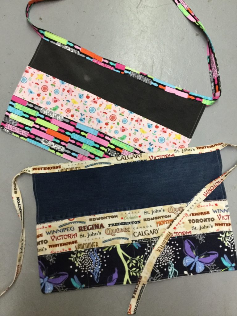 Here’s a couple of aprons we’ve made from the legs of an old pair of jeans and some scraps of cotton fabric: fun, quick, easy, and oh-so-practical – we’re using these to keep all of our cleaning supplies and such handy as we ensure the Museum is safe for all visitors, volunteers, and staff.