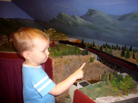 The Model Railway is open throughout the Museum’s hours: Tuesday through Saturday, 10:00 – 4:00. Appointments are not necessary, but we are only allowing one group at a time in there – so if you come to see it while another group is in, we’ll have to ask you to wait a few minutes (but we have plenty of other stuff to look at while you do!). Our staff member will go into the room, get the trains running, then come out again. You can go in, enjoy the trains for as long as you want, and when you leave our staff member will go in again to turn them off. Then we’ll wipe everything down and get ready for the next group! Admission, to the trains and the rest of the Museum, is by donation.